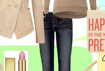 Premier ensemble : des teintes douces, une veste cintrée et un petit côté girly fun qui donne le sourire sans risquer de passer pour une gamine de dix ans.