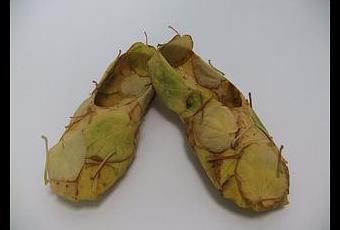 Découpez dans un carton léger le patron de vos pantoufles et des petits morceaux des plus jolies feuilles d'automne que vous avez glanées.