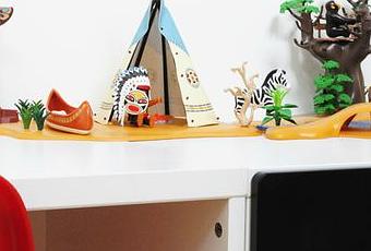 Il peut jouer aux Playmobil et prendre l'univers qu'il veut dans son tiroir.