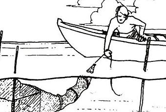 Pour récupérer le poisson du filet, le pêcheur soulève le piquet auquel le bertovello est lié à la fin (le dernier "enca") et le dépose dans le bateau.