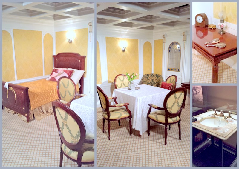 Je prends une grande respiration et pars à sa recherche. La chambre est baignée par la lumière du jour (ça change de la 3eme classe obscure à souhait) et le mobilier est raffiné, digne des plus grands hôtels étoilés. Du bois massif pour le lit, des tissus cossus pour les assises de chaises et du marbre pour les sanitaire, un concentré impressionnant de luxe au centimètre carré. J'attrape Walter qui s'est glissé sous la table et ressort avant de m'attirer des ennuis.