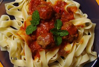 Voici mon dîner hier soir, des tagliatelles avec une délicieuse sauce tomate aux boulettes de viande.