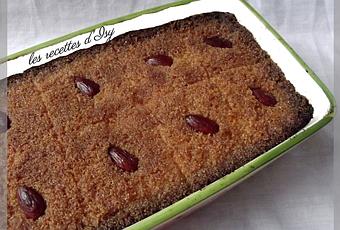 Beurrer un plat, mettait la semoule dedans (surtout ne pas tasser), faire des carrés, ajouter une amande sur chaque carré, puis mettre au four préalablement chauffer à 200° pendant 1 heure,
