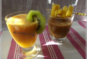 Peler et couper les fruits, mettre dans un blender, servir dans les verres puis mettre au frais,