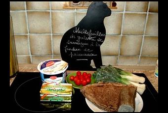 MILLEFEUILLES DE GALETTES DE SARRAZIN ET ANDOUILLE DE GUEMENE A LA FONDUE DE POIREAUX