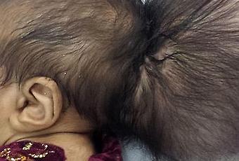 Après l’homme au nez sur le front dont j’ai parlé hier, la petite Asree Gul (en français: nouvelle fleur) est née avec un deuxième crâne attaché à sa tête.