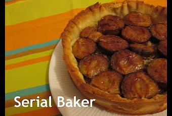 Placer les moitiés de reine-claude sur la poudre de noisettes, côté peau vers le fond de tarte.Cuire au four (th6/180°C) 30 à 40 min environ.