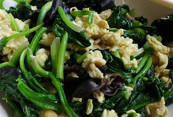 Ajoutez les épinards, baissez un peu le feu. Dès que les feuilles commencent à se ramollir, ajoutez les œufs battus, salez si nécessaire.