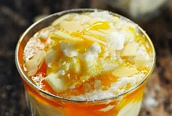 Le plus léger des nuages passionné au chocolat blancIngrédients : 180g de chocolat blanc -20cl de crème fraîche liquide entière – 2 fruits de la passion – 2càs de sucre – 5cl d'eau- 1 trait de citron vert- 1 meringue - des amandes effilées - Commencez par réaliser le sirop passionné.Ouvrez les fruits et videz la pulpe dans une petite casserole. Ajoutez le sucre, l'eau et le jus de citron. Faites cuire à feu moyen pendant environ cinq minutes. Filtrez le contenu de la casserole à travers une passoire. Mettez le jus dans la casserole et faites cuire jusqu'à obtenir un jus sirupeux.Laissez refroidir.Faites fondre le chocolat blanc au bain marie ou au micro-ondes, puis laissez le refroidir quelques minutes. Il ne doit pas reducir mais il ne doit pas être non plus chaud, sinon la crème ne va pas aimer !Fouettez la crème en chantilly bien ferme puis incorporez-la au chocolat, délicatement à la maryse. Répartissez la crème dans des petits verres puis laissez prendre au frais une bonne heure.Vous n'avez plus qu'à servir en couvrant vos mousses de sirop passionné, de meringue et d'amandes effilées !Mais pourquoi, et dire que j'ai failli parler de l'Angleterre qui se mange sans prononcer Nigelaaaaa… failli… est-ce que je vous raconte ça…