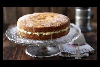 Quand l'éponge a refroidi, couper le gâteau en deux horizontalement pour créer deux gâteaux minces. Étaler la garniture au citron partout dans la moitié inférieure du gâteau, puis placez la moitié supérieure ( la moitié qui a été piqué et trempé dans la bruine de citron) sur le dessus.