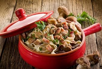 Bien égoutter les pâtes, ajouter les champignons, bien mélanger.