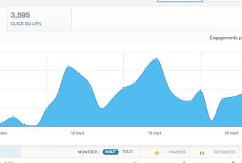 Twitter vous donne accès aux statistiques globales de votre site ou encore celles d’une page précise. Comme sur la plupart des outils de statistiques Web vous pouvez définir la date de début et de fin de la période de votre rapport.