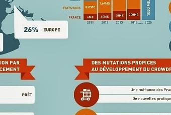 Infographie du crowdfunding"Prêt, don contre contrepartie, investissement au capital d’entreprises… tous modes de financement confondus, le crowdfunding représentera plus de 5 milliards de dollars dans le monde en 2013, dont 80 millions d’euros en France. Le double par rapport à 2012 et loin du véritable boom attendu en 2020 : 1 000 milliards de dollars dans le monde ! L’investissement au capital d’entreprises, ou crowdfunding equity-based, concerne aujourd’hui un sixième des flux qui transitent sur ces plateformes. Un pourcentage amené à augmenter fortement ces prochaines années." ... par SmartAngels