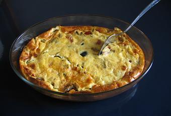 Mélanger la ratatouille et la pâte, répartir dans le plat.