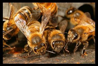 Rien de tel avec les abeilles. Or il est vital de maintenir la zone centrale de la ruche, là où se trouvent les larves, le plus proche possible de 35° C. Alors les voilà qui ventilent si la température au sein de la ruche devient trop élevée, ou vont chercher de l'eau pour qu'elle s'évapore. Si jamais c'est l'inverse, et que le centre est trop froid, elles frissonnent pour produire de la chaleur. Comment ceci est-il possible ? Parce que les abeilles sont "programmées" pour agir ainsi : dès que la température dépasse une certaine valeur, elles ventilent ; dès qu'elle devient inférieure, elles frissonnent. Efficace et simple.
