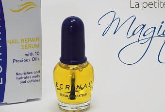 Je suis une fille très coquette et j’aime beaucoup porter du vernis à ongles. Le soucis c’est que pour avoir de jolis ongles il faut les entretenir et que les entretenir demande du temps. Et j’avoue qu’en ce moment, le temps que j’ai je préfère le passer à coudre ! En plus de ça, entre le travail au magasin, les tâches ménagères et la couture on ne peut pas dire que je ménage beaucoup mes mains. Mais lorsque je veux faire une petite manucure sympathique et surtout lorsque je veux la photographier, j’ai une petite astuce qui marche du tonner et qui s’appelle le Sérum Réparateur aux 10 huiles précieuses d’Ecrinal.