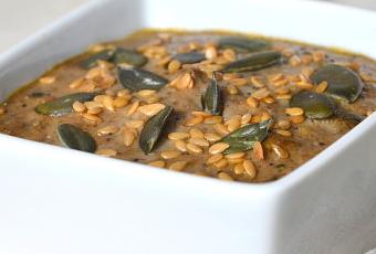 - Placer le mélange des une terrine ou dans des ramequins individuels. Parsermer de graines de courge et lin.