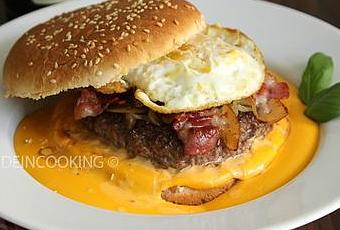 Comment résister devant une recette pareil ? C'est une recette que j'ai trouvé sur le blog "Bowl'N'Roll". Un blog qui regorge de bonnes idées gourmandes. En effet celle-ci m'a clairement séduite. J'ai rajouté quelques ingrédients et je peux vous dire. Vous, les accros des burgers comme moi, vous allez être complétement gaga de ce burger.