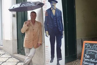 Ci-dessus, statue de Fernando Pessoa au café A Brasileira.