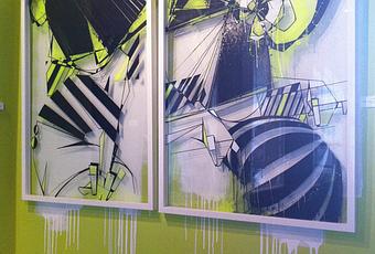 Mixant les rouleaux, marqueurs, pinceaux, bombes, projections dans ses œuvres, son atelier est le théâtre d’ expérimentation où naissent des oeuvres originales sur des supports nouveaux. Surprenant à chaque exposition par une proposition graphique multiple, on retrouve dans toutes ses œuvres sa fibre, son style unique qui rend ses créations automatiquement identifiables. »