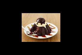 Préparation :Préchauffer le four à 350 degrés F. Faire les gâteaux : Brush quatre 1 1/4-cup les moules brioche (ou utiliser des ramequins de 10 onces ou moules à muffins jumbo ) avec les 2 cuillères à soupe de beurre fondu. Saupoudrer les moules avec de la poudre de cacao et de taper l'excédent .