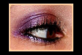 J'ai appliqué le jaune pâle et brillant sur toute la paupière, le violet en coin externe et l'orange brique au milieu de la paupière. Un coup de mascara et de liner plus tard...