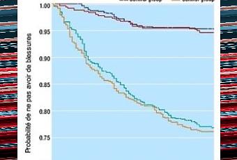 La Figure résume ces résultats (regroupant 2631 jeunes recrues de l’armée âgées entre 17 et 35 ans) et montre qu'il n'y a effectivement pas de différences entre les deux groupes (contrôle vs expérimental) au niveau de la probabilité d'être blessé que l'on fasse ou non des étirements avant une séance d'entraînement.