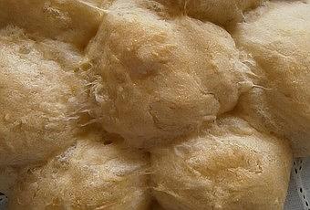 4) Tapisser une lèchefrite de papier sulfurisé et disposer les boules de pâte dessus de manière a ce que ca ressemble à une grappe de raisins. Laisser reposer 1 heure à l'abri des courants d'air