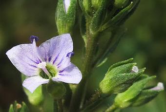 La Véronique mouron d'eau (Veronica anagallis-aquatica), aux petites fleurs lilas pâle veinées de lilas plus foncé, est une espèce peu commune des abords des sources et des ruisseaux.