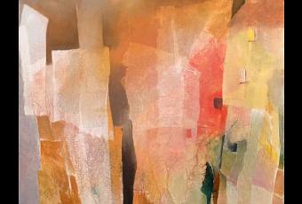 (2)GERDIL, Yolande: Seul le bruit de mes pas sur le pavé résonne.Technique mixte/Toile; 50 cm x 50 cm