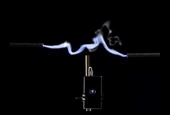 Plus de 200 000 volts ont été nécessaires pour former un arc électrique de 30 cm de long, comparable à un éclair en ce qui concerne le dégagement de chaleur et de lumière. Ce courant électrique gigantesque est caractérisé par une forte variabilité, le cauchemar des transporteurs d’électricité. Pourtant les scientifiques l’ont juste fait passer à travers un petit transformateur avant de l’envoyer dans le téléphone.