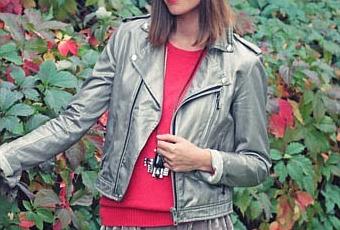 Les feuilles commencent déjà à se teinter de rouge, je trouve ça tellement joli, alors j'ai ressorti mon pull rouge flashy, mon perfecto argenté, idéal pour la mi-saison, et ma jupe patineuse en velours. Pour accessoiriser tout ça, j'ai choisi de mettre mon collier XXL et mon joli headband graphique en soie Esther Bonté. Un look automnal et coloré !
