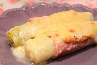 Beaucoup de gens n'aiment pas les endives au jambon, ou bien même les endives cuites en général. Voici une petite variante avec des blancs de poireaux. C'est simple à réaliser et vraiment délicieux ! Merci à ma chef Virginie pour cette bonne idée :)