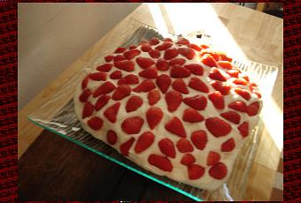 Mettre au frigo recouvert d'un film protecteur... Assembler le Pavlova environ 2 heures à l'avance en recouvrant la meringue de la chantilly et des fraises coupées en deux.