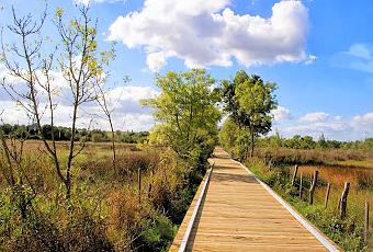 Départ du parking de la société des amis de l' école publique ( Sael) quartier de la Pelousière, A la sortie du stationnement prendre a droite et en route une balade dans la prairie verte et humide de Tougas , qui se caractérise par des contrastes et des oppositions de toute nature : des prairies agricoles, des marais quasiment inaccessibles ces dernières années, une faune et une flore remarquables, 74 espèces d’oiseaux dont le foulque macroule, le cygne tuberculé, le grèbe huppé ou la bécassine des marais. Les poissons frayent en compagnie de la grenouille verte, des ragondins, de la chauve-souris pipistrelle, des libellules et moustiques. La réalisation d’un sentier-passerelle a nécessité la construction de 300 m de platelage et la pose de 400 pieux, plantés à sept mètres de profondeur..Un circuit de 4,6 km sur lequel on peut flâner des heures.*
