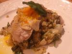 Il faut imaginer un poisson moelleux juste passé à la poële sur un mélange de céréales rehaussé d'herbes odorantes. Pour parfaire le tout, une petite sauce à l'orange accompagne ce délicieux repas. C'est vraiment extra.