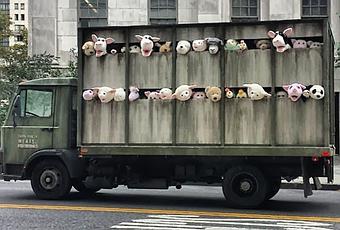 Dans le cadre de son projet « Better Out Than In » en 2013, le street artist Banksy envoi des animaux en peluche à l’abattoir dans les rues de New York avec un camion parcourant les rues de la ville.