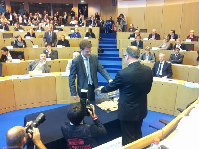 Ils se sont congratulés longuement et avec émotion. D’ailleurs, il ne s’en est pas caché, Nicolas Mayer-Rossignol marchera dans les pas d’Alain Le Vern, l’ex-président de la Région Haute-Normandie. D’où l’éloge attendu de l’action d’un homme qui, pendant quinze ans, a mis toute son énergie au service de la région et des deux départements que sont l’Eure et la Seine-Maritime. Reconnaissons aussi qu’Alain Le Vern avait bien préparé son affaire. Discret mais décidé, il a mijoté sa démission de tous ses mandats pendant les vacances estivales, conservé le secret sur son avenir laissant libre cours à toutes les spéculations, préparé une passation de pouvoir intelligente. A contrario, on ne retiendra pas comme un grand moment d’éloquence le discours de Mme Préjean, doyenne de l’assemblée et membre du groupe Front National. A l’écouter on entendait une passionaria à la Tixier-Vignancourt, ciselant ses propos de remarques acerbes et félonnes pour vanter le résultat de la cantonale de Brignoles, dénoncer la politique d’Alain Le Vern alors qu’elle salua les qualités intellectuelles et morales de l’ancien président. Au FN, on trouve de tout, des costauds balourds et musclés, des Maurassiens pur jus et des élus polis qui n’en pensent pas moins. Nicolas Mayer Rossignol élu avec 37 voix contre 14 à Bruno Le Maire (le mari de Pauline) ne s’accorda aucun temps mort. Au boulot tout de suite après les remerciements de circonstance et les allusions aux cumulards spécialistes de la vérité au-delà et de l'erreur en deçà. Chacun s’y reconnaîtra. Est-ce pour cette raison que Franck Martin brillait par son absence ? Le programme des semaines à venir ne manque pas de contenu. Dès le 4 novembre, les élus régionaux se retrouveront. Ils débattront des priorités budgétaires après une réunion de la commission permanente. NMR en profitera pour rencontrer préfets, parlementaires, Conseil économique et social, élus départementaux de Seine-Maritime et de l’Eure, présidents des régions de France en lien avec la Haute-Normandie. Après qu’il a rappelé la priorité des priorités « l’emploi et notamment l’emploi des jeunes » le nouveau président a annoncé sa présence aussi souvent que possible sur le terrain. Dans les entreprises, les lycées, les lieux de formation…Il n'a pas oublié les dossiers chauds : lignes SNCF, contournement Est de Rouen, nouvelle gare rouennaise… Les douze vice-présidents ont été élus dans la foulée. La Région est en ordre de marche. Les cinq abstentions n'en sont que plus anecdotiques.