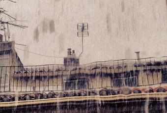 Bref, je le reconnais de vous narguer, sûre qu’après un haut-le-cœur vous m’auriez enviée mais pardonnée, moi la galérienne estivale, je vous aurais dit être en vacances. Alors je vous le dis c’est trop injuste, c’est vraiment trop injuste, parce que vacances se doivent de rimer avec soleil, et là c’est pas gagné … Parce que chez moi dans le moi dans le midi, quand la pluie s’abat, on ne rigole pas, le parapluie n’est qu’un accessoire pour s’agripper pas pour s’abriter, se donner une contenance, protéger son chignon bun. Ici quand il pleut c’est de l’eau qui mouille qui s’abat sur nos corps, traverse les textiles, frappe nos peaux, nouille jusqu’aux os. Le ciel étrangement clair se déchire, éclate, tonne, hurle, explose, et moi je sursaute, râle, murmure même pas peur … mon œil ! J’aime l’orage et je le crains, crains que mon toit n’y résiste pas, mon vieux toit fragile, mon vieux toit qui n’aime pas la pression, qu’il ne faut pas maltraiter.