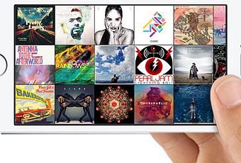 Tout en parcourant votre collection de musique, basculant en mode paysage affiche une mosaïque de vos pochettes d'albums. Faites glisser pour faire défiler, pincez pour zoomer et dézoomer, et appuyez sur pour jouer.