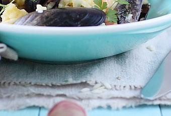Quelques saveurs océanes aujourd’hui et des photos qui nous ramènent quelques semaines en arrière où il faisait encore beau et chaud. C’est un risotto clairement inspiré de la paëlla avec des moules, des crevettes et du chorizo. Toujours un plaisir à déguster.