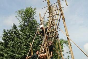 LA photo du groupe sur un lance roquette d’artifices (pour que la pluie tombe…). John en haut, Céline, Ken Ken, Oma et Nico.