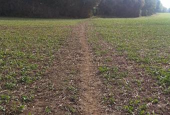 Parfois, l'agriculteur local a fait disparaître le sentier sous ses plants. Je trace alors droit à travers champs. Pour reprendre un terme hippique, le terrain est alors un peu lourd.