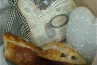badigeonnez les avec soit un jaune d'oeuf et un peu d'eau, soit avec de la confiture, c'est ce que j'ai choisi, enfournez les à 180°C, 15 min four chaud.