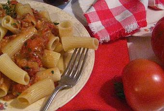 - j'ai substitué des rigatonis no 19 Delverde aux linguines.