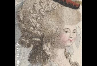 Ce qui est particulièrement intéressant dans cette coiffur,e c'est sont volume et les vagues qui l'entourent, dont certaines ressemblant à des crochets. De nombreux autres exemples de coiffures de cette époque sont visibles sur mon blog comme dans ces articles : Bonnet à la glorieuse, Deux coiffures du XVIIIe siècle, Coiffures du 18eme siècle et quelques autres, plus d'autres qui viendront par la suite car j'ai acquis quelques jolies gravures de la fin du XVIIIe siècle.