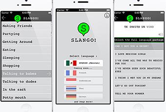 Notre application de ce lois-ci s´intitule SLANGO, une application qui propose de nombreuses versions qui comprennent les «bases», la «nourriture» et le «sommeil», en passant par «Picking up Babes», «Potty Mouth ´, et «In the sac».