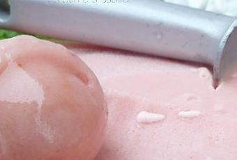 Un sorbet que me réclame tous les ans mon homme pour utiliser notre belle récolte de pêches de vigne. Elles sont douces et sucrées, un vrai régal encore cette année. Et puis c'est vraiment très très simple à faire.