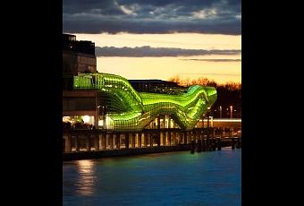 Et rien que le lieu est déjà tout un programme à lui seul. Qualifié de « truc vert » par un ancien représentant de l’état que nous ne nommerons pas, d’autres préféreront l’appeler le « Beaubourg vert ». D’ailleurs, si de prime abord elle ressemble à une grosse chenille vert pomme échouée sur le quai d’Austerlitz, telle une luciole, la structure s’illumine à la tombée de la nuit lui donnant un genre futuriste étonnant. Finalement, qu’on l’aime ou qu’on la déteste, la cité de la mode et du design a cet avantage indéniable de faire parler d’elle et de ne pas passer inaperçue.