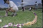 Des bénévoles espérant battre un record du monde ont confectionné une couronne de fleurs de 1.626 mètres de long à Honolulu (Hawaï), selon les organisateurs de la tentative.